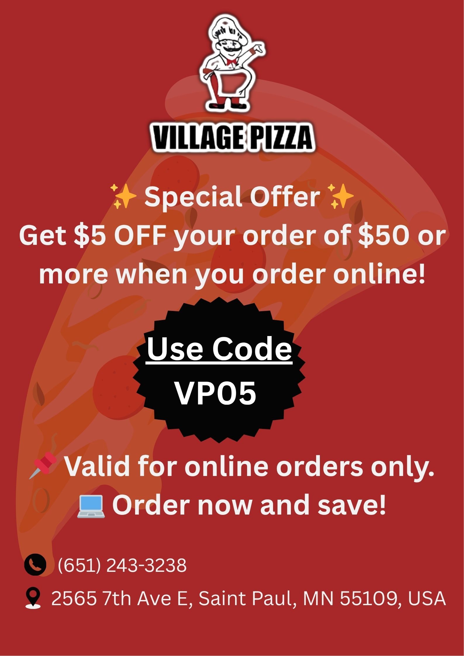 Welcome to Village Pizza, where every slice tells a story of passion, tradition, and flavor. Nestled in the heart of North Saint Paul, Minnesota, our cozy pizzeria has been serving up delicious pies With a commitment to quality ingredients, friendly service, and a warm atmosphere, we invite you to experience the taste of our community.